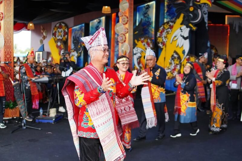 Malinau – Bupati Malinau, Wempi W. Mawa, S.E., M.H bersama jajaran Forum Koordinasi Pimpinan Daerah (Forkopimda) menyaksikan penampilan seni dan budaya dari Paguyuban Kerukunan Keluarga Batak (KKB) Malinau pada perayaan Festival Budaya Irau ke-11 dan Hari Ulang Tahun (HUT) ke-26 Kabupaten Malinau. Acara berlangsung meriah di Arena Lapangan Pro Sehat, Panggung Budaya Padan Liu Burung, Jumat (10/10/2025) siang.